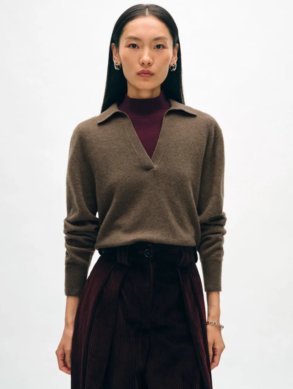 An everyday favorite, this polo sweater is a luxurious alternative to your go-to tops. Made from 100% responsibly sourced cashmere, this style features a straight fit and an open collared neckline that allows you to perfectly showcase your jewelry. The ribbed trim adds a refined touch, making it the perfect knit for almost any occasion.