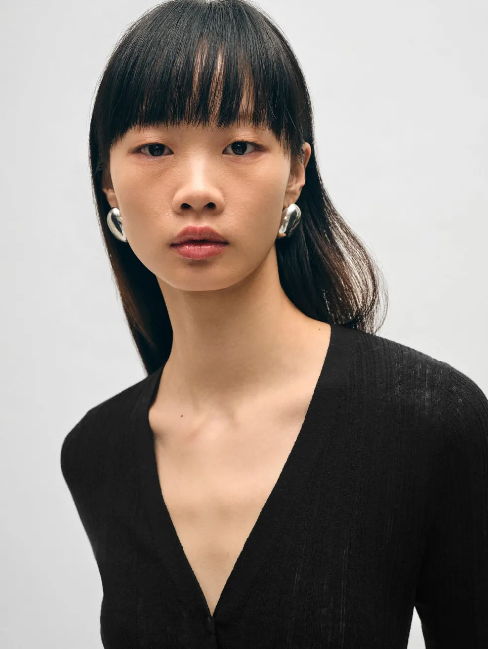 linen gauze ribbed v neck cardigan