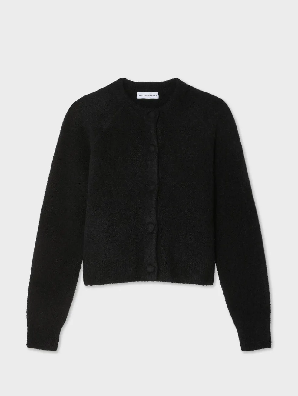 Inspired by the latest runway trends, this jacket is defined by its classic details and textural interest. Made of a luxurious merino wool-cashmere blend, the bouclé knit outerwear piece is touchably soft and noticeably lofty. Featuring a crewneck shape that fastens with a row of tonal buttons, this straight-fitting jacket balances both comfort and style. Emulate the season’s styling by wearing yours with a bandeau top and mini skirt for a fashion-forward look.