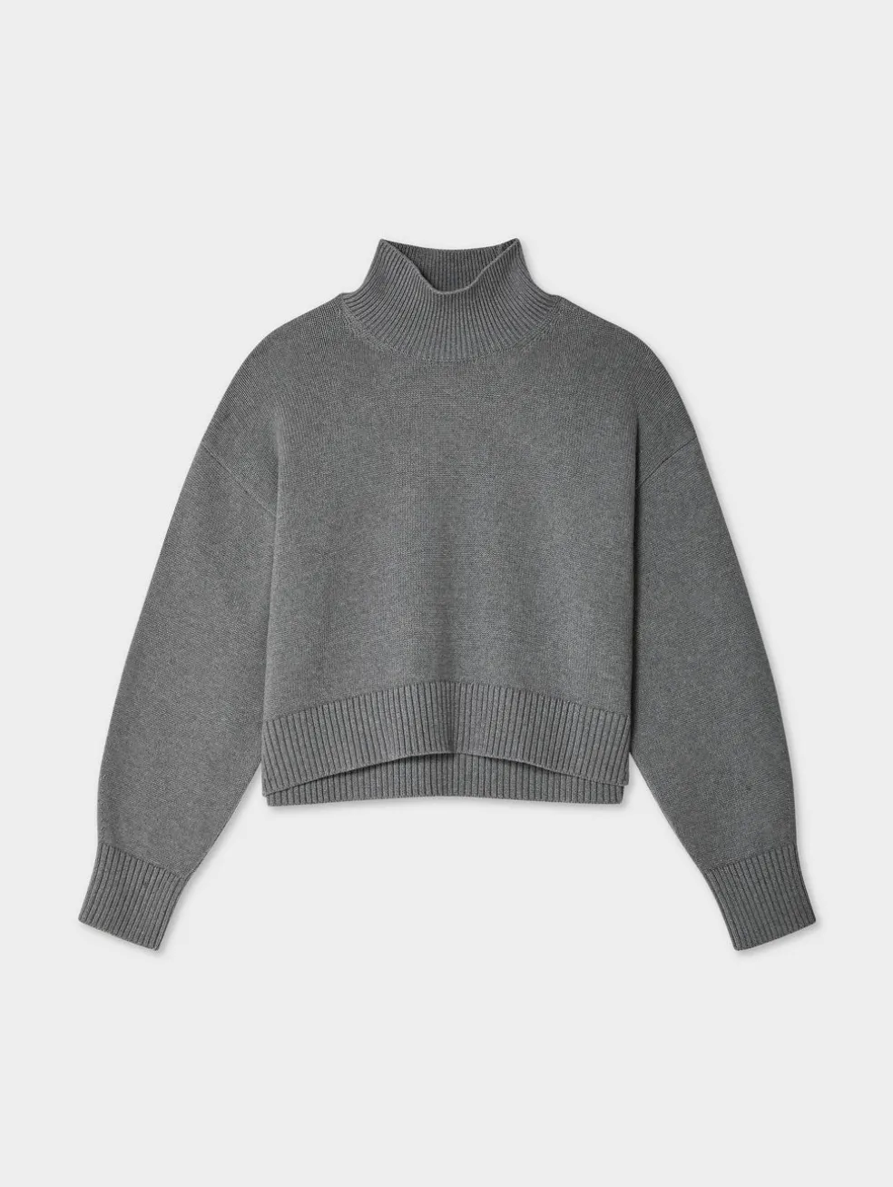 Milled locally in Turkey, our organically grown cotton is chosen for its soft handle and lasting quality. It’s used to knit this standneck, which boasts a cropped and oversized fit with framed by wide, ribbed trims. Drop shoulders add to the sweater’s fresh, new feel. Consider it the perfect partner to the season’s wide-leg pants.